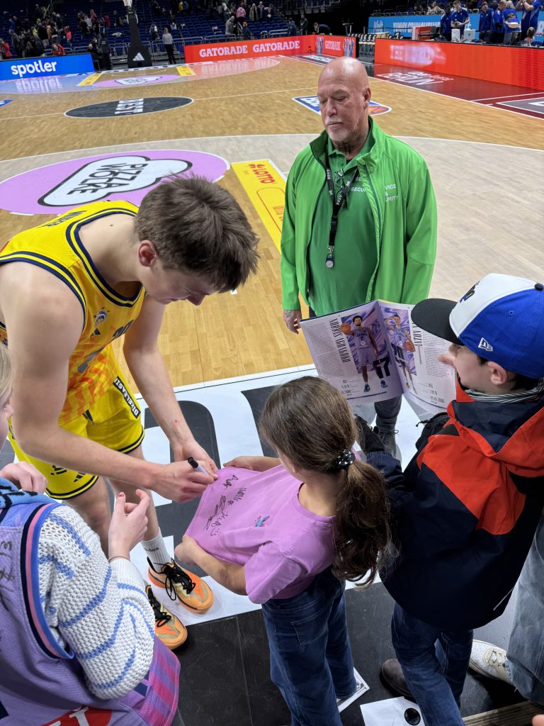 von Alba Berlin an. Das Spiel endete mit einem klaren 87:62-Sieg für Alba. Doch der Ausflug hatte noch mehr zu bieten: Nach dem Spiel startete eine spannende Autogramm-Jagd. Zahlreiche Alba-Spieler nahmen sich viel Zeit, unterschrieben fleißig und posierten geduldig für Fotos mit unseren Kindern.