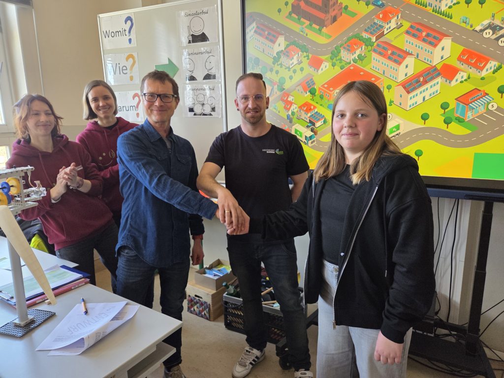 Am Donnerstag, den 12. März fand ein erstes Kennenlernen zwischen den Schüler*innen und den Umweltpädagog*innen statt, welches den Auftakt der Kooperation markiert. Hierbei lernten die Schüler*innen die verschiedenen Ausbildungsberufe der Kreiswerke Barnim kennen. Anschließend ermöglichte das Team der Umweltbildung den Schüler*innen der sechsten Klasse, sich mit dem Thema Erneuerbare Energien auseinanderzusetzen. Durch anschauliche Experimente entdeckten die Kinder spielerisch die verschiedenen Formen erneuerbarer Energien.